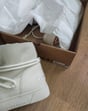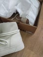 Beige sheepskin women’s sneaker boots bring a bright and elegant look to your winter outfits with their soft tone. They pair easily with cream knitwear, white jeans and camel coats, completing your casual sneaker style with refined elegance.