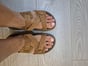 The tan nubuck leather slippers bring natural warmth and effortless harmony to any look. Perfectly pairs with beige, off-white, and earthy tones for a balanced summer style.