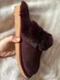 The burgundy suede sheepskin slippers add elegance to your winter look with their rich, noble hue. Perfectly pairs with greys and neutrals.