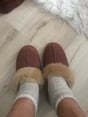 Dusty Rose suede sheepskin women’s slippers add a soft, romantic warmth to your home style. Pair with cream loungewear or knitted sets to achieve a calm and cozy winter look.